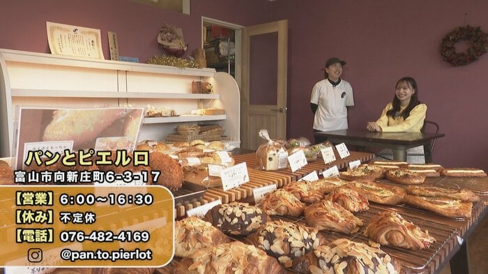 富山市向新庄町、朝6時。焼きたての香りが漂うなか、「パンとピエルロ」がオープンする。2022年12月にオープンしたこの店には、100種類以上のパンがズラリと並ぶ。