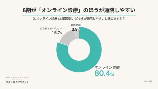 約8割が「対面受診よりもオンライン診療のほうが通院しやすい」と回答。移動・待ち時間の解消が、多忙な生活のなかでの受診ハードルを下げている実態が浮き彫りに。