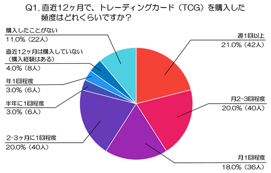 調査1:直近12ヶ月で、トレーディングカード(TCG)を購入した頻度はどれくらいですか?