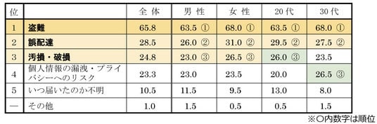 ◆ デメリットは「盗難」「誤配達」「汚損・破損」が挙がる