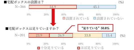 普及が進む宅配ボックスですが、集合住宅での設置は約半数(54.9%)でした。