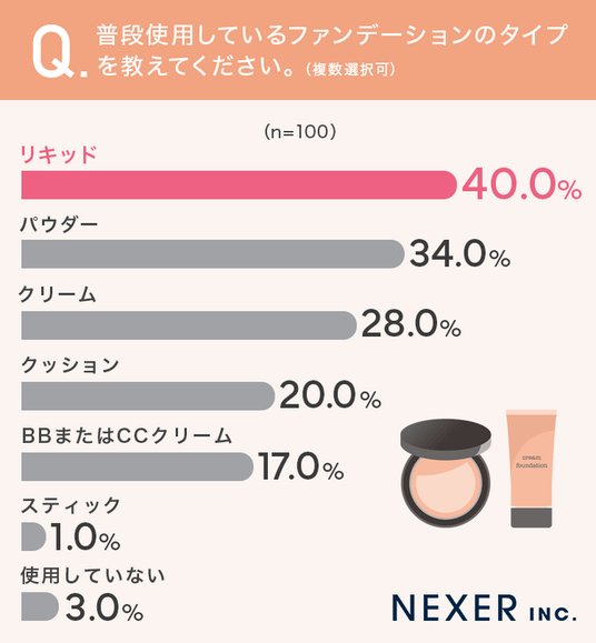 ■ファンデーションは「リキッド」タイプが40.0%で最多