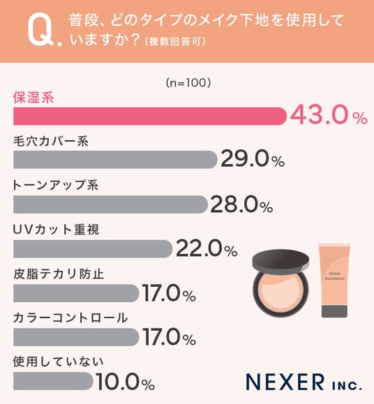 ■43.0%が「保湿系」のメイク下地を使用と回答