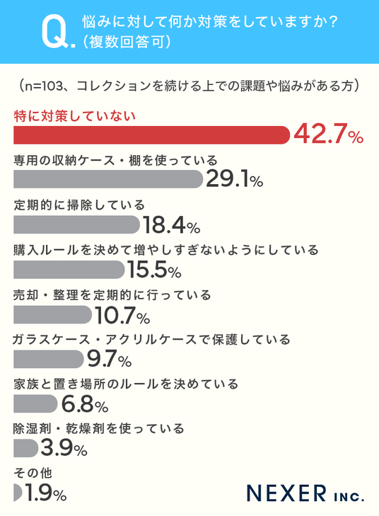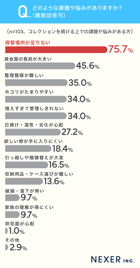 株式会社NEXER・コレクションを続ける上での悩みや保管の重視ポイントに関する調査