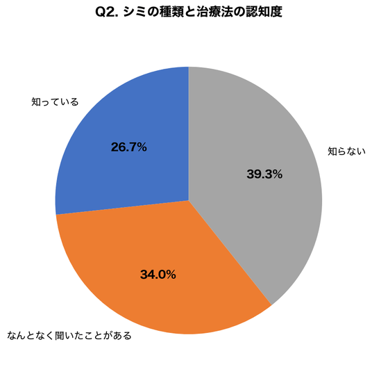 設問:シミにはいくつかの種類があり、種類によって適切な治療法が異なることを知っていますか?