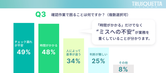 これらの結果から、確認作業の課題は大きく3つに整理できます。