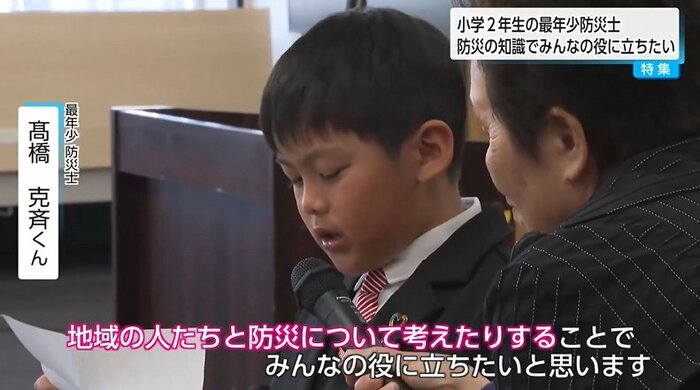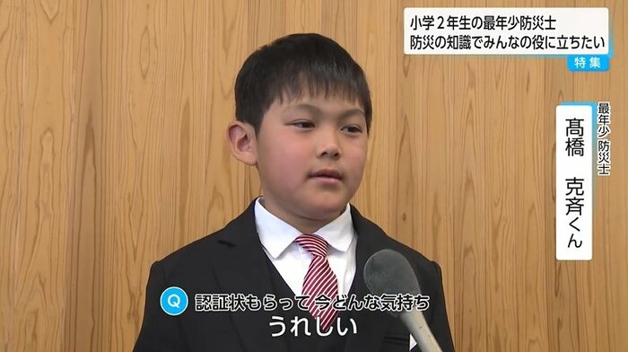 2025年10月、全国最年少の7歳6カ月で防災士を取得した少年がいる。小学2年生の高橋克斉(たかはし かつなり)さんだ。この年齢での資格取得は全国で5人目。子どもならではの視点で防災の重要性を訴える克斉さんの活動に期待が高まっている。