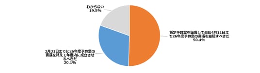 暫定予算編成し26年度予算の審議継続すべき50%