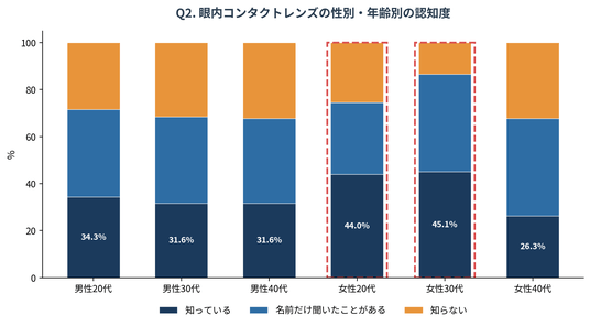 Q2.眼内コンタクトレンズの性別・年齢別の認知度
