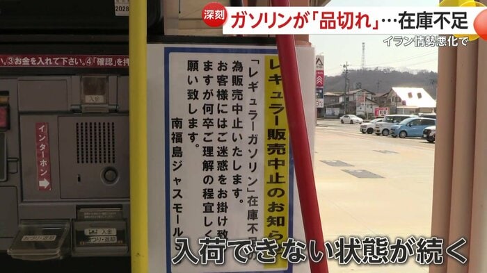 福島市のガソリンスタンドでは、レギュラーガソリンが品切れになっていた。