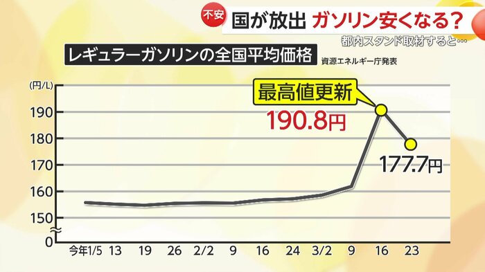 こうした中、政府は26日、石油製品の安定供給に向けた切り札として、石油の「国家備蓄」の放出に踏み切った。そうした中、ガソリン高騰のきっかけになったイラン情勢を巡っては…。