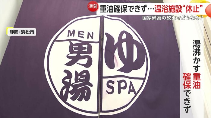 浜松市が運営する温浴移設は、お湯を沸かすための重油が確保できなくなったため、25日から無期限の営業休止を決めた。