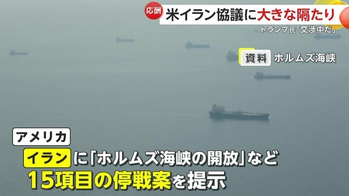 戦闘終結に向けてアメリカ側は、イランに対しホルムズ海峡の開放など15項目の停戦案を提示。