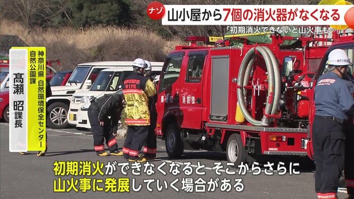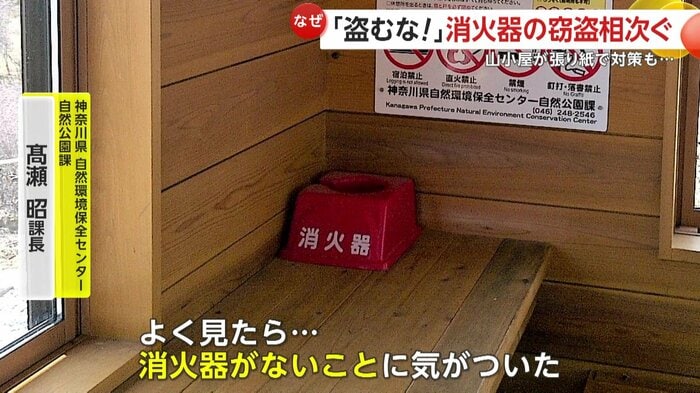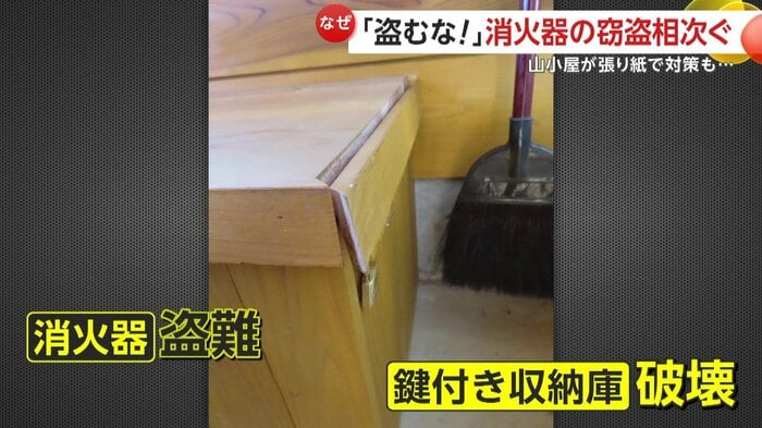 これまでに7個が盗まれ、一部山小屋では消火器が未設置のままだという。