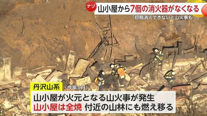 現在も2カ所の山小屋には消火器が置かれていない状態だという。