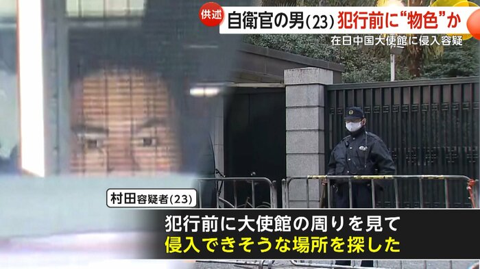 調べに対し村田容疑者は「大使館の敷地内に侵入したことは間違いありません。犯行前に大使館の周りを見て侵入できそうな場所を探した」と供述している。