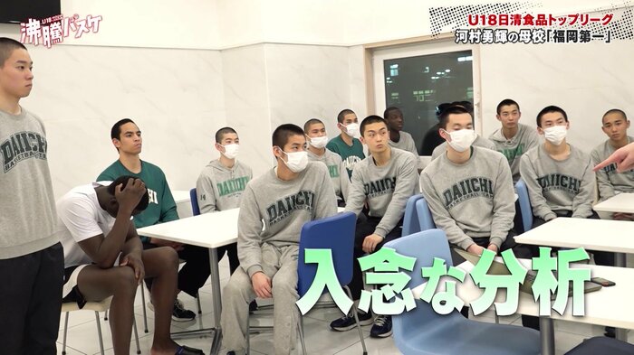 新チームへと移行し、これまで出場経験の少なかった選手たちが主力として挑む今回の入替戦。チームの神髄となる「堅守速攻」を 作り上げる圧倒的な練習量で知られる福岡第一は、入替戦の前日もハードなトレーニングを行っていました。宿舎では対戦相手に決まった藤枝明誠高校(静岡)の対策を再確認、チーム全員で運命の一戦に挑みます。