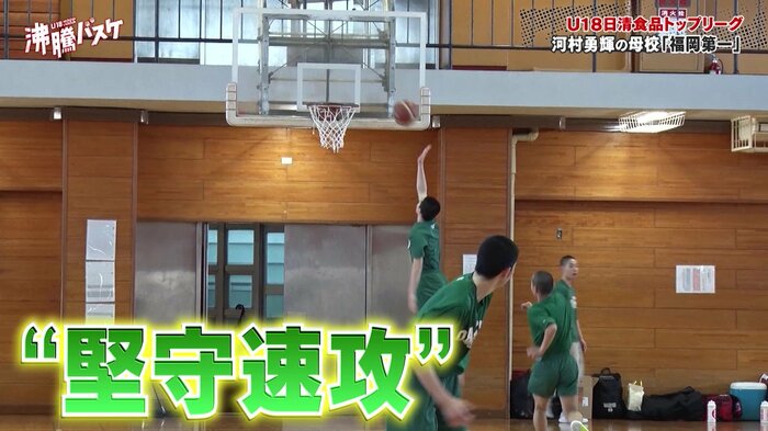 3月15日、藤枝明誠(静岡)との一戦は、お互い激しいディフェンスで 試合はロースコア、一進一退の攻防に。福岡第一のキャプテン田中柚稀は 3ポイントシュートに、4つのアシストでチームに流れを呼び込みます。第4クオーター、残り2分を切ったところで福岡第一が3点をリード。それでも諦めない藤枝明誠。エース・渡邊 聖(2年)に2本のスリーポイントシュートを決められ、最終スコアは59対62、最後の最後で逆転を許した福岡第一。6年目にして初のブロックリーグで戦うことになった。