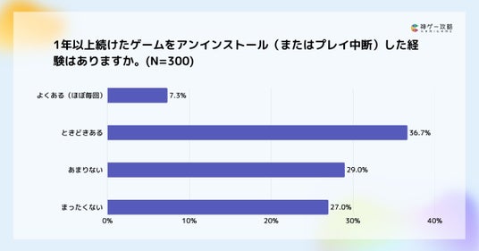 1年以上継続した長期プレイヤーでも約4割が離脱経験あり