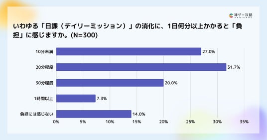 ・日課(デイリーミッション)は「20分程度で負担」が31.7%