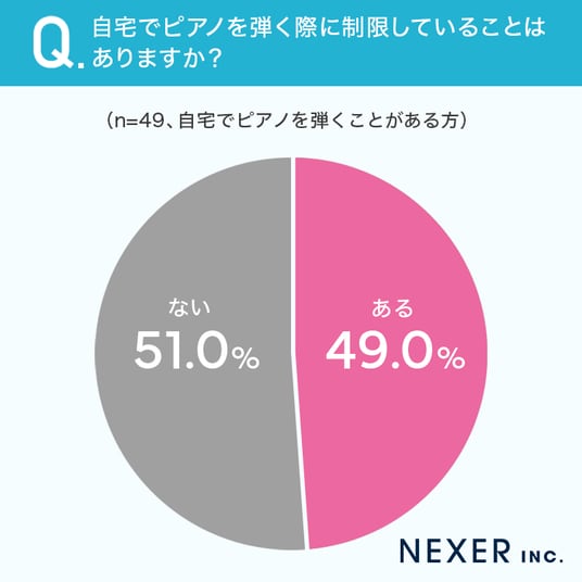 ■49.0%が「自宅でピアノを弾く際に制限していることがある」と回答