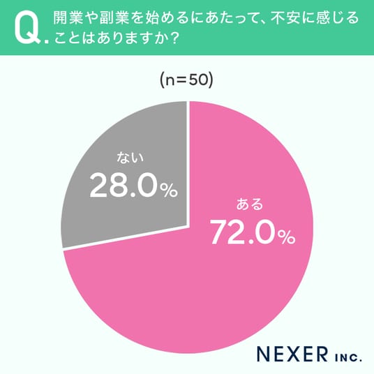 ■72.0%が、開業や副業を始めるにあたって「不安がある」と回答