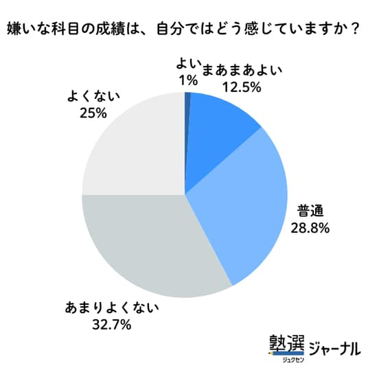 必ずしも「嫌い=苦手」ではない?嫌いな科目でも「成績は普通以上」が4割