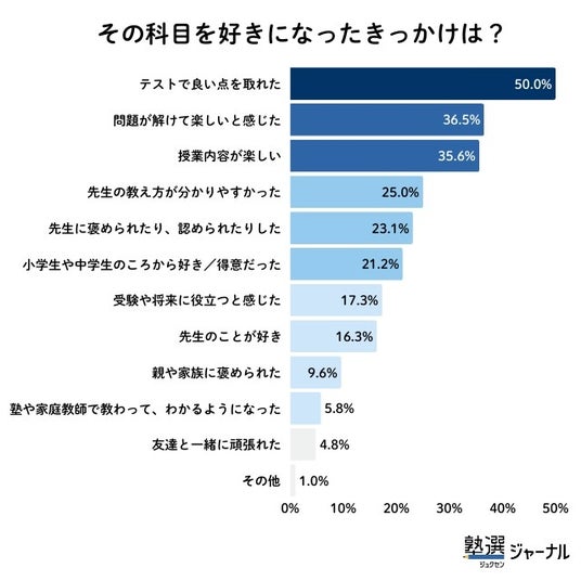 科目を好きになったきっかけ1位は「テストで良い点が取れたこと」