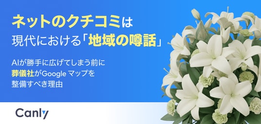 Google ビジネスプロフィール(TM)︎・HP・各SNSの一括管理サービス「カンリー店舗集客」の開発・提供を行う株式会社カンリー(所在地:東京都品川区、代表取締役:辰巳 衛,秋山 祐太朗)は、葬儀業界向けに「ネットのクチコミは現代における「地域の噂話」 AIが勝手に広げてしまう前に葬儀社がGoogle マップを 整備すべき理由」を無料公開しましたので、ご案内いたします。