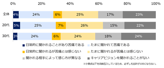 ▼「日常的に聞かれるが苦痛とは感じない」「たまに聞かれるが苦痛とは感じない」と回答した方
