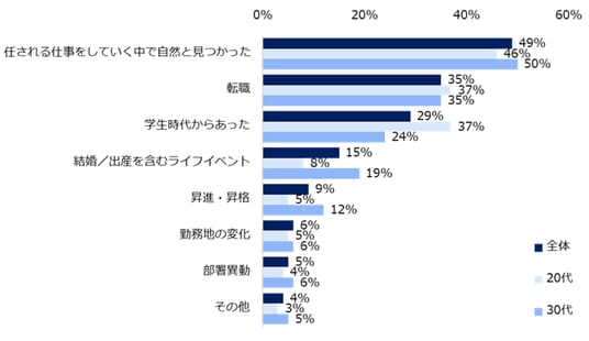 【図2】キャリアビジョンが「明確にある」「なんとなくある」と回答した方に伺います。見つかったきっかけを教えてください。(複数回答可/年代別)