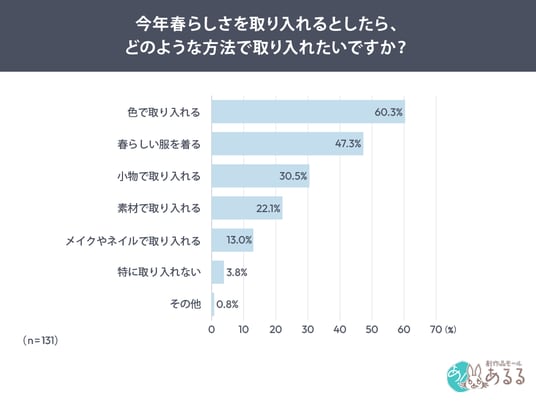 「今年春らしさをどのような方法で取り入れたいか」尋ねたところ、