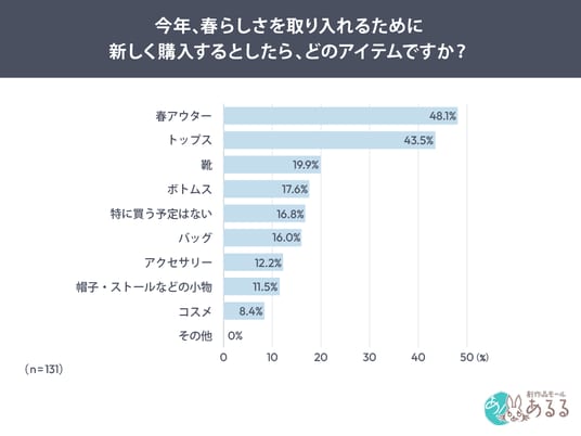 「今年春らしさを取り入れるために、どのアイテムを購入したいか」を尋ねたところ、