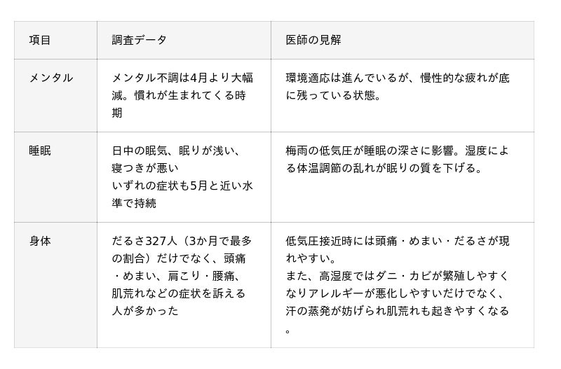メンタルは落ち着いてきたのに、身体症状だけが再浮上する謎◆ データが示す6月の実態