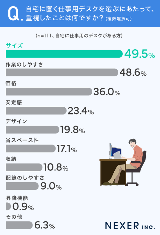 続いて、仕事用のデスクを選ぶにあたって重視したことを聞いてみました。
