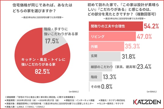 カツデン株式会社(本社所在地:東京都台東区、代表取締役:坂田 清茂)は、1.住宅設計者/2.直近5年以内に注文住宅を建てた方を対象に「住宅のプロと施主に聞く家の質と満足度」に関する意識調査を実施しました。