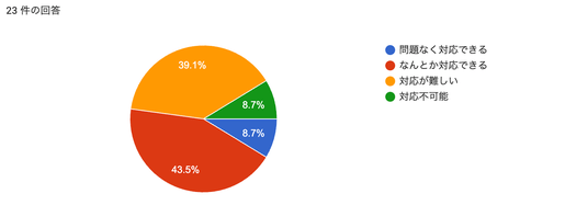 43.5%が「なんとか対応できる」と回答した一方で、「対応が難しい」「対応不可能」との回答は約48%と半数近くにのぼります。