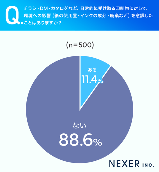 ■11.4%が、印刷物に対して「環境への影響を意識したことがある」と回答