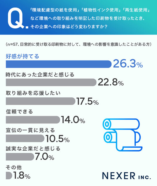 ■26.3%が「好感が持てる」と回答、環境配慮を明記した印刷物は企業の印象を変える