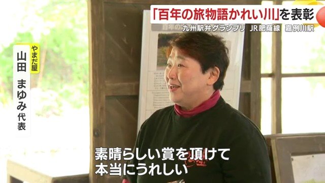 これまで福岡のJR九州本社で行われてきた表彰式は、今回初めて地元・嘉例川駅で開催された。やまだ屋の山田まゆみ代表は「(駅弁販売を)始めた嘉例川駅に社長においでいただいて、素晴らしい賞をいただけて本当にうれしい。みんなで頑張ってきてよかった」と喜びを語った。