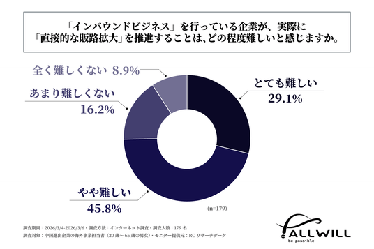 中国進出企業の海外事業担当者の約75%が、インバウンドビジネスを行っている企業が実際に直接的な販路拡大を推進することは難しいと感じている