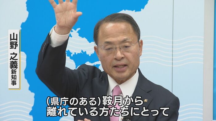 この日、就任会見にも臨んだ山野新知事。会見の場で注目されたのが、知事選の公約として掲げていた「奥能登知事室」と「南加賀知事室」の設置についての具体的な方針。まずは他の自治体の先行事例を調査するとしたうえで、山野新知事はその意義についてこう語った。