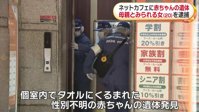 名古屋市の繁華街にあるネットカフェで赤ちゃんの遺体が見つかり、母親とみられる20歳の女が逮捕された。