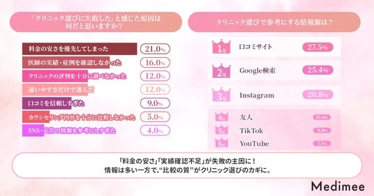 【「クリニック選びに失敗した」と感じた原因は何だと思いますか?クリニック選びで参考にする情報源は?】