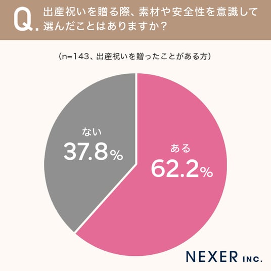 ■62.2%が、出産祝いを贈る際に「素材や安全性を意識して選んだことがある」と回答
