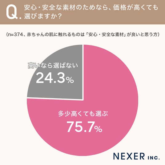 ■75.7%が、安心・安全な素材のためなら「多少高くても選ぶ」と回答