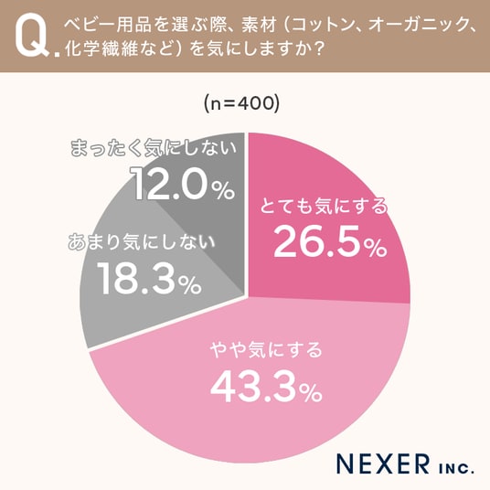 まず、ベビー用品を選ぶ際に素材(コットン、オーガニック、化学繊維など)をどのくらい気にするか聞いてみました。