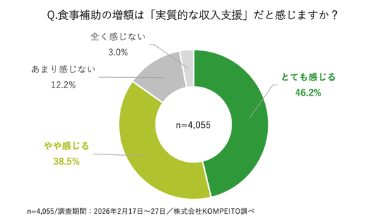 3. 食事補助は「実質収入支援」に:84.7%が食事補助を「実質的な収入支援」と捉える
