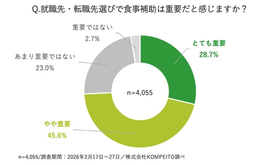 4. 採用市場へのインパクト: 74.3%が就職先選びで「食事補助」を重要だと感じる