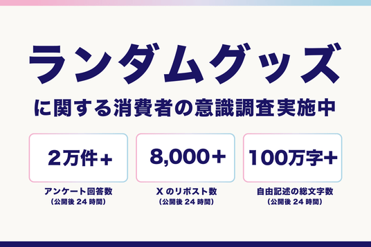 本調査は、幅広い消費者からランダムグッズに関するご意見・ご要望を収集するために実施しています。SNS上では流れてしまいがちな消費者の意見を集約・記録し可視化することが主たる目的です。